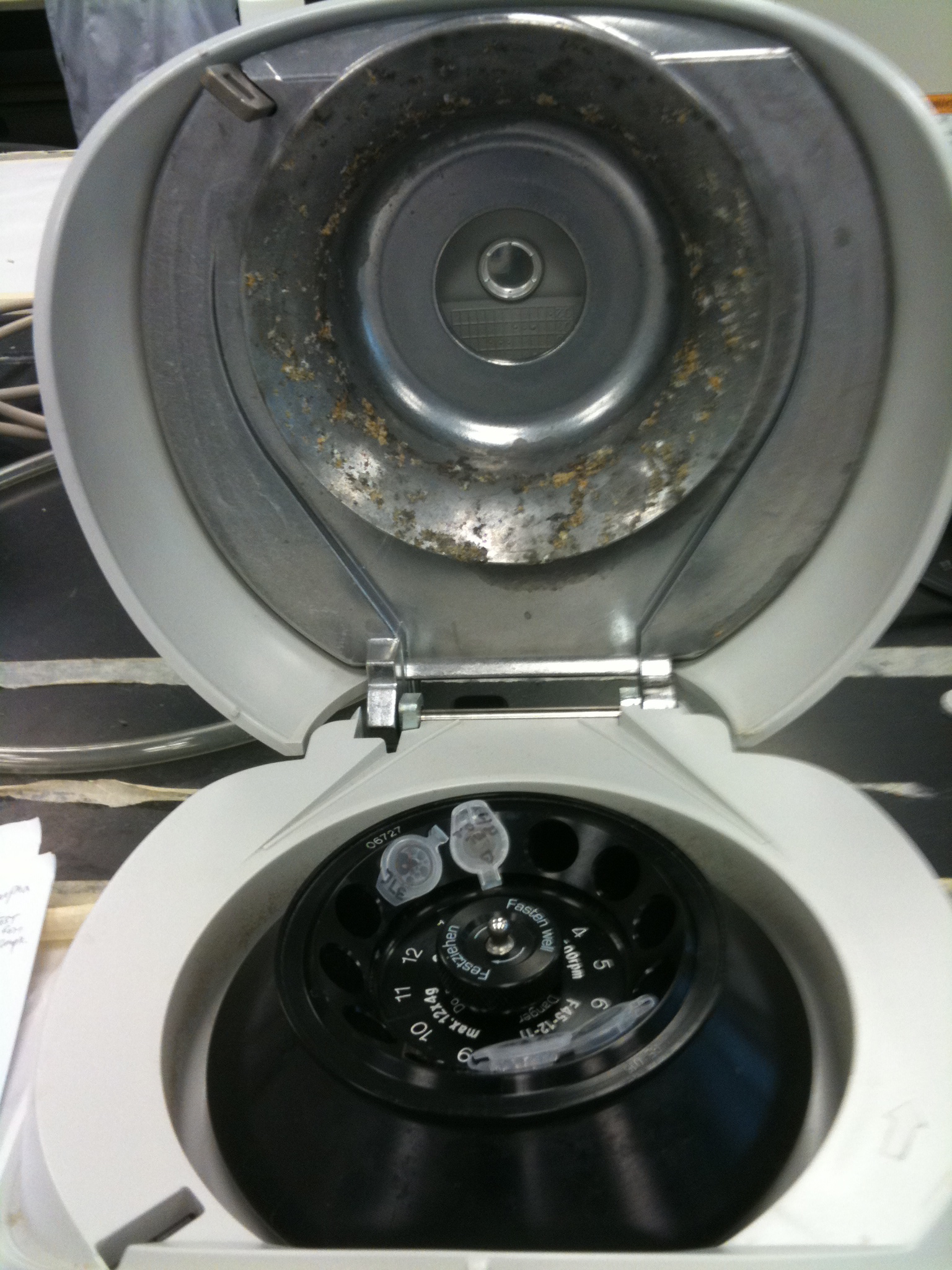 Absolutely hate a dirty centrifuge. Seriously c’mon whoever used it before and dirtied it, please please please be responsible and clean that up. You never know just what kind of solutions, mixtures, potential pathogens get mixed up in there.