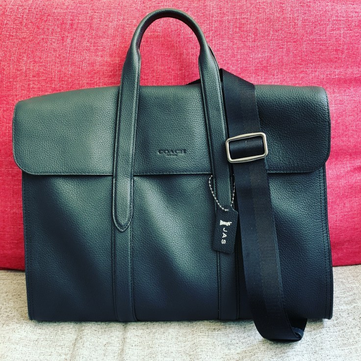I initially wanted the midnight blue one based on the picture below, but when I went to the Coach flagship store in NYC, they told me they none of the nearby Coach stores in NYC were carrying it at that moment. In other words it was sold out. They offered to bring it in from another store outside NYC, but it will take a day to arrive to the flagship store before I can collect it. I decided that it wasn’t worth the trouble to go back to the same store just to buy the bag. So I settled on the all black version, which, after using it for a couple of months, may have been a better choice after all. Black goes well with any outfit, a neutral colour when it comes to leather goods. This all-leather bag is terrific. It feels great carrying it. The leather is supple and of high quality. The stitching is top notch and I am not worried about packing too many things inside, worrying that the weight might tear the stitches at the handles or the shoulder straps. I got this for (no surprise!) SGD600, when it would have been SGD900 if I bought it locally in Singapore.